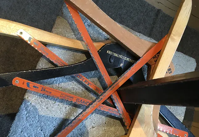 En populär utställning som vi försöker ha framme ofta är ”Känn på historien”, där barn i alla åldrar får testa och känna på kriminalvårdens kulturarv. Som att såga i galler med en såg gjord av en galge.